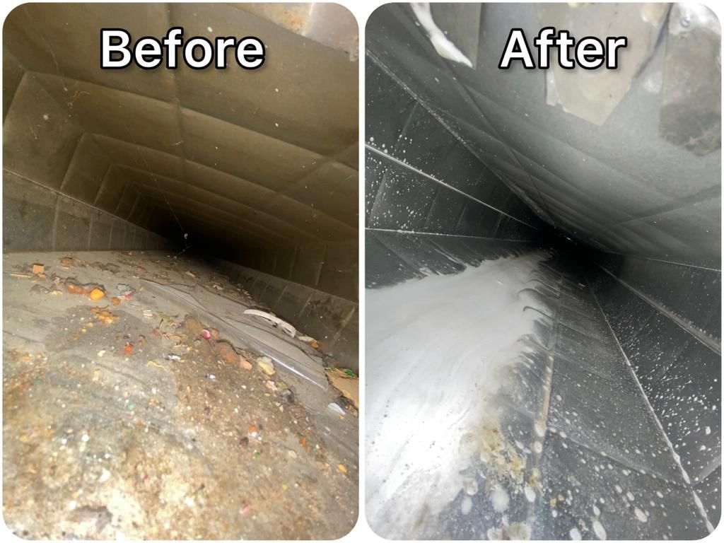 The after photo shows the same air duct after our professional air duct cleaning service. As you can see, all the dirt, dust, debris, and mold have been removed, leaving you with clean, fresh air to breathe. You’ll notice a significant improvement in the air quality of your home, and you may even see a reduction in your energy bills thanks to the improved efficiency of your HVAC system.